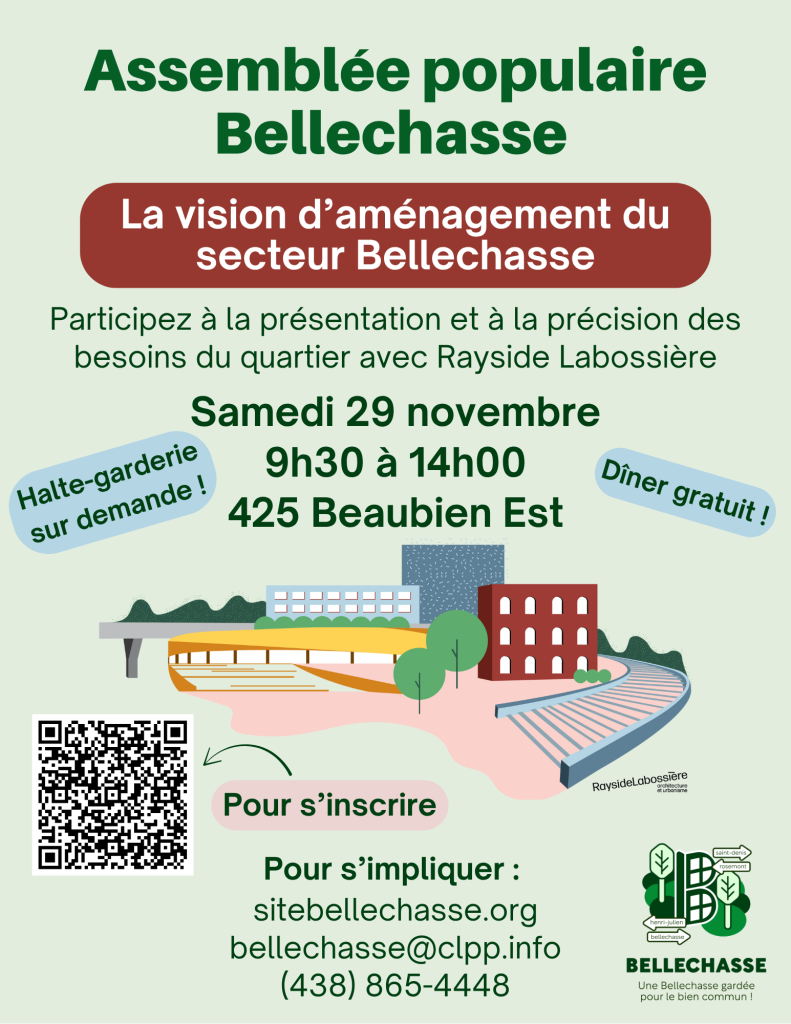 Nous nous pencherons sur les besoins et les aspirations pour le secteur Bellechasse dans le cadre de la démarche participative d’aménagement.